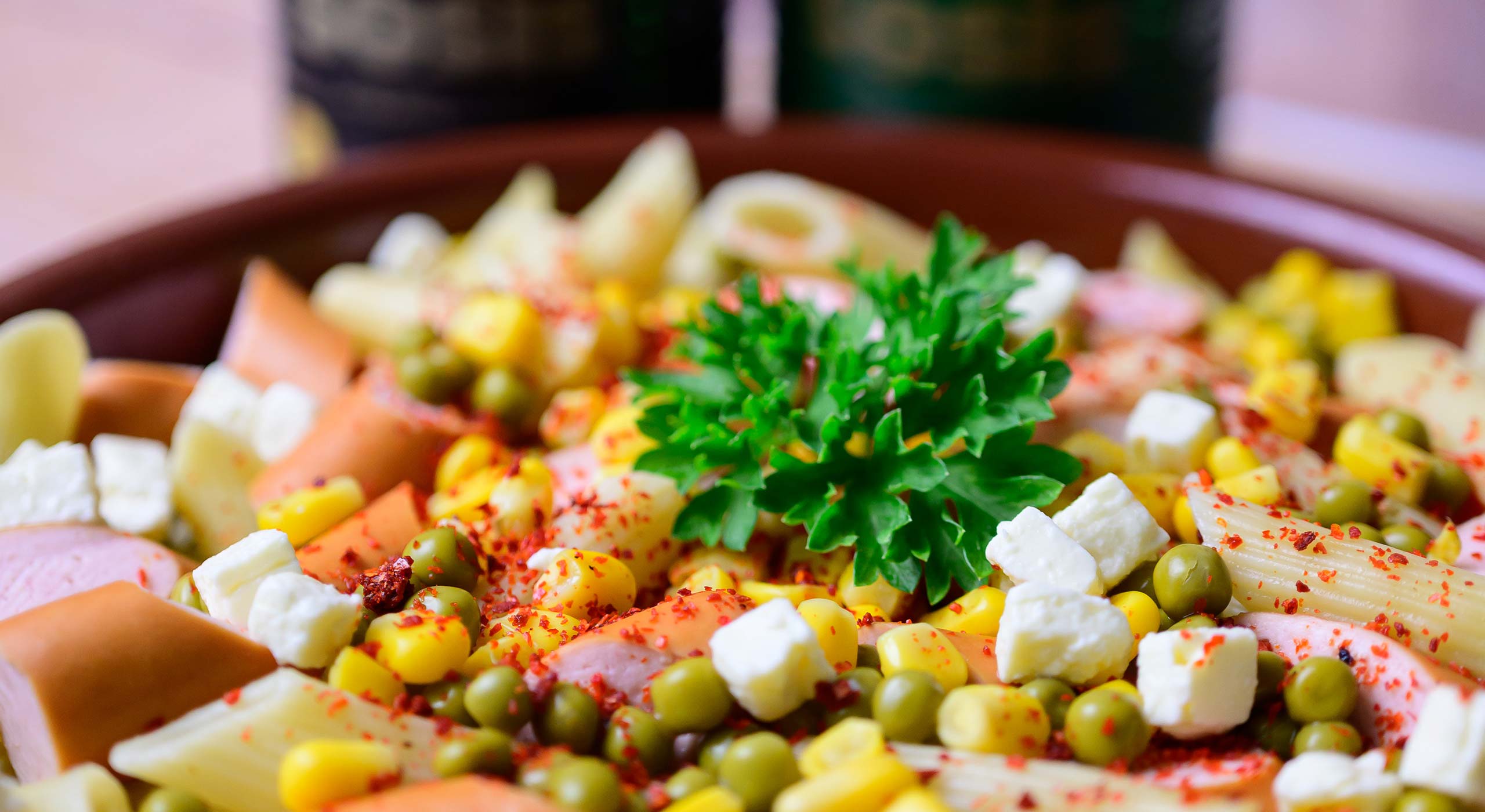 72% poultry meat (turkey, chicken), drinking water, poultry fat with skin (turkey, chicken), iodized table salt, potassium iodate), spices, spice extracts, maltodextrin, sugar, stabilizers: E451, E450; antioxidant: E300; preservative: E250; edible casing made of bovine collage, beech wood smoke.