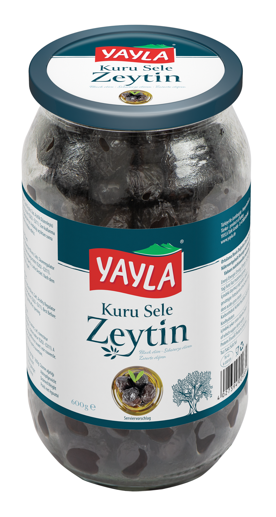 Black olives (96%), salt, vegetable sunflower oil, acidity regulator (E270), preservatives (E211, E202).
